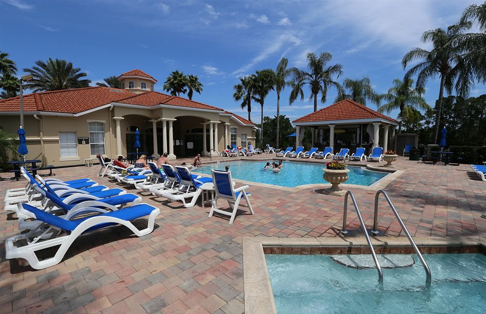 Escoge relajarte bajo el sol de la Florida en la piscina del Emerald Island resort con gazebos y un Tiki Bar, un hermoso ambiente y cómodas hamacas. O siéntate en la burbujeante tina caliente de la comunidad y habla con otros huéspedes de las casas vacacionales de Emerald Island